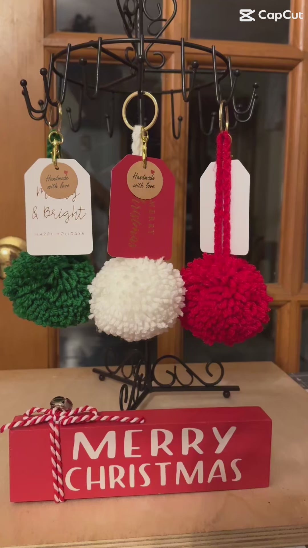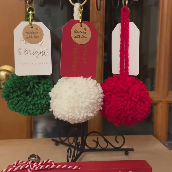 This cozy set of 3 pom pom ornaments (green, white, and red) brings warmth and personality to your holiday décor. Each piece is handmade with love — perfect for hanging on the tree, decorating gifts, or using as keychains and bag charms.